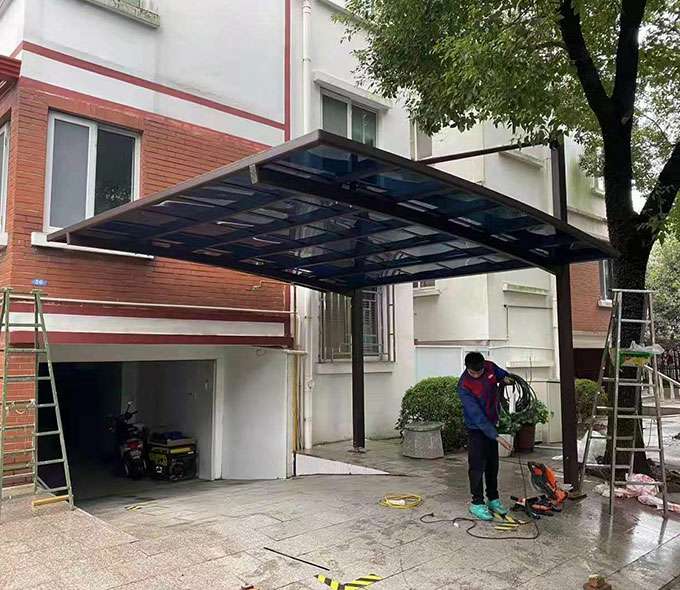 上海郝荣智能建筑有限公司车棚系列全部采用高品质、高强度铝合金材料精加工而成,具备的氧化保护能力,不生锈,表面特殊的工艺处理,大大提高了车棚的使用寿命。顶棚使用添加了防止紫外线涂层的德国拜耳耐力板,降低了来自紫外线的分解,历久弥新,成就了优越的耐候性。