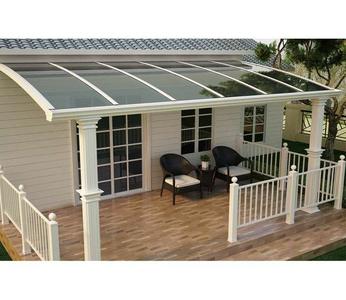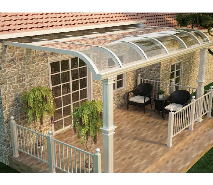 上海郝荣智能建筑有限公司雨棚(A5款窗棚、露台棚)系列产品是高强度铝合金和聚碳酸酯板(耐力板)的结合。主体结构全部采用高品质、高强度铝合金材料精加工而成,具备的氧化保护能力,不生锈,表面特殊的工艺处理,大大提高了雨棚的使用寿命。顶棚耐力板的运用,能遮挡阳光中的有害紫外线对地板、墙壁、窗帘等损害;同时阻挡夏日毒辣的太阳,可以控制室内温度的上升,冷气效果也大幅度提高,从而达到节约能源的作用。